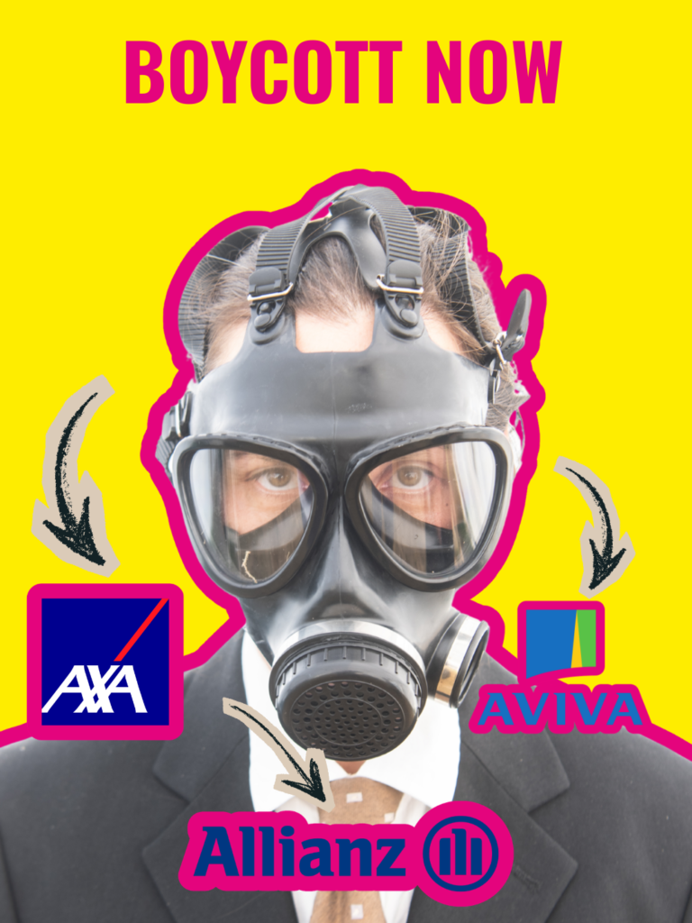 We disrupt the insurers bankrolling fossil fuels and war crimes